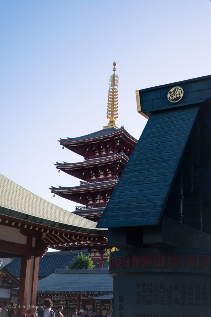 Taken in the summer of 2025 in Asakusa, Tokyo, Japan. Features a pagoda in Sensō-ji, one of the oldest established temples.